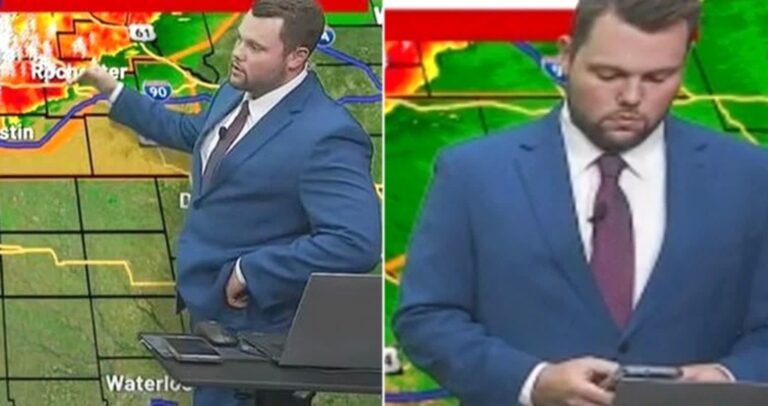 ミネソタの気象予報士が嵐の中、家族の安全を確認するために生放送中にメッセージを送ったことが話題に。