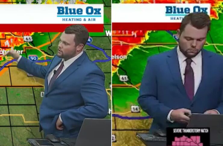 米気象キャスターが生放送中に家族の安否確認のためメッセージを送信し、視聴者から苦情が寄せられた。