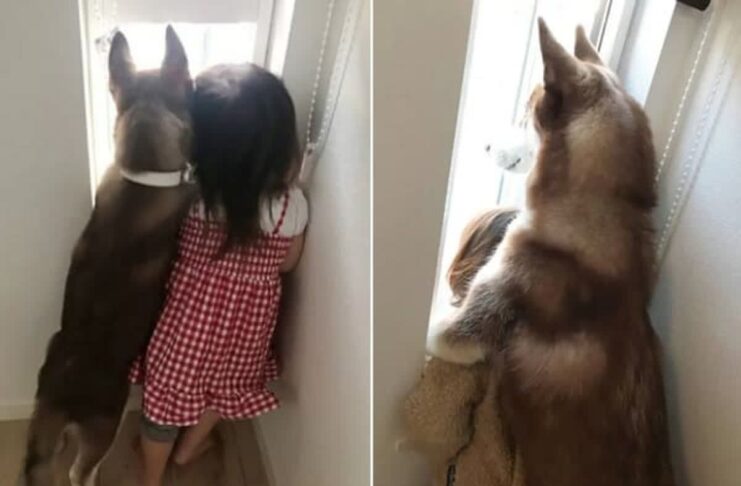 2歳の子どもとシベリアン・ハスキーの成長を比較した写真が話題に。4カ月でハスキーが大きく成長。