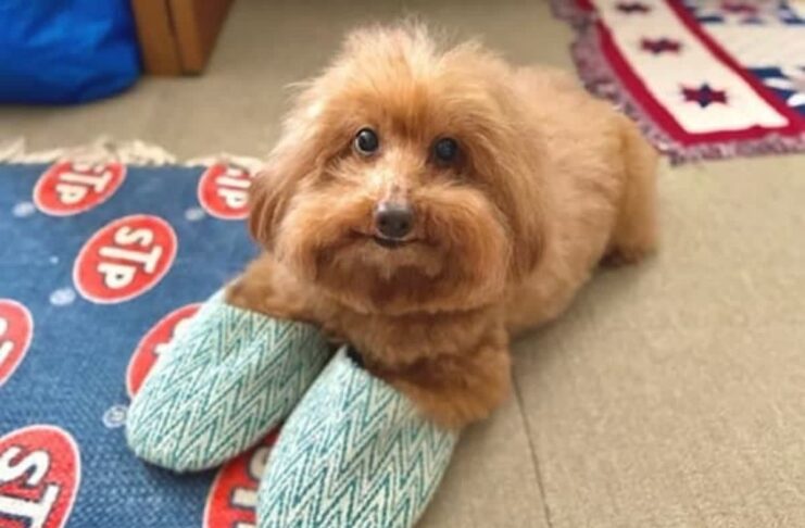 飼い主のスリッパを履いた犬の微笑ましい姿がSNSで話題に。思わず笑顔になる可愛さが魅力。