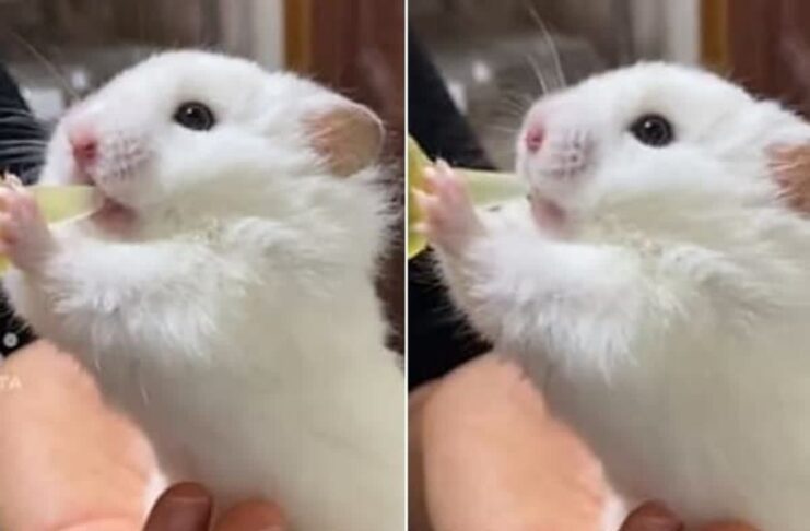 ハムスターが栄養剤をおやつと勘違いし、前足で掴んで嬉しそうに飲む姿が話題に。