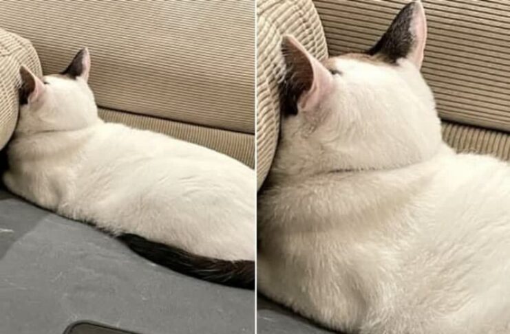 好奇心が招いた悲劇?ソファの隙間で身動きが取れなくなった猫の「死んだ目」が可愛すぎる