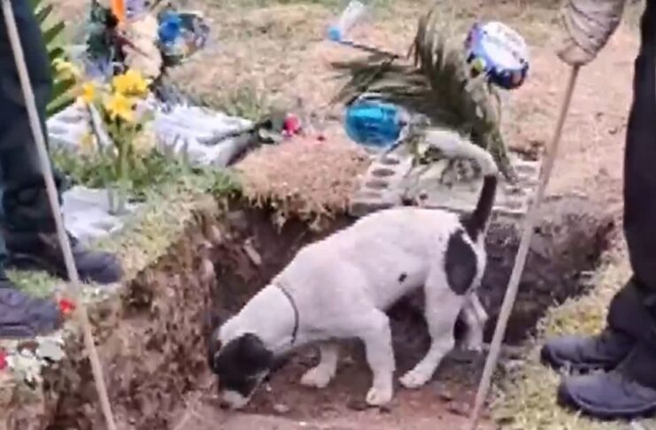 「最後の別れに駆けつけた忠犬」...墓の前で泣き続ける犬の深い愛に世界中が涙