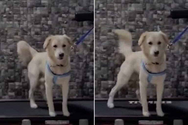 ランニングマシンで下半身だけを動かす犬のユニークな姿が話題に。愛らしさとユーモアが溢れる映像。