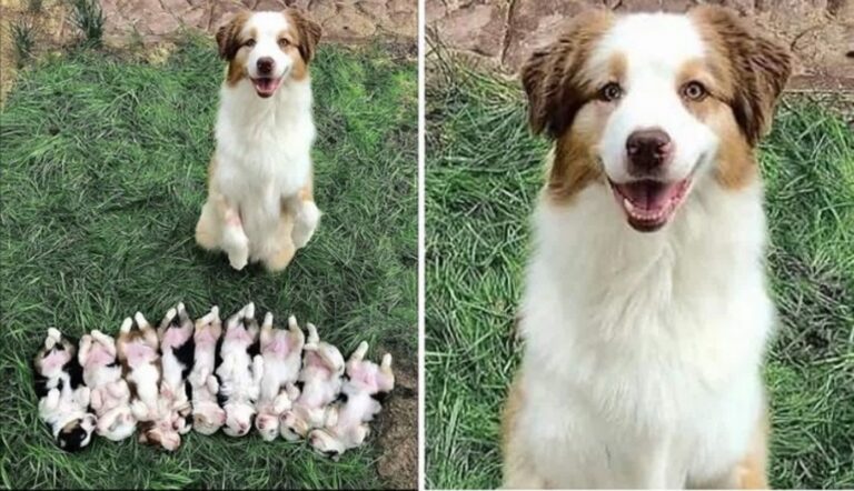 「見てみて、みんな私が生んだのよ!」7匹の子犬を見守る母犬の優しい笑顔に胸キュン