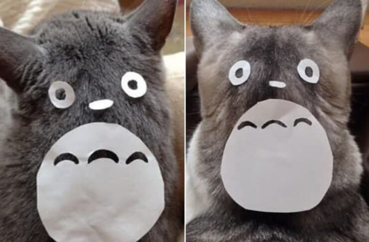 飼い主が猫の後頭部に紙で作ったトトロの顔を置き、SNSで話題に。猫の魅力が再確認された。