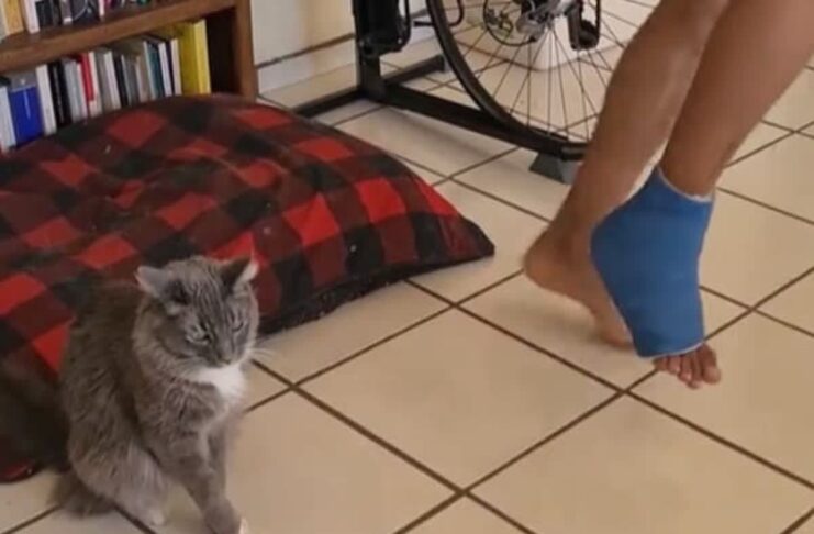 猫「こう歩くんだろ?」ギプス姿の飼い主を「完コピ」!見事すぎる観察力とモノマネに爆笑の嵐