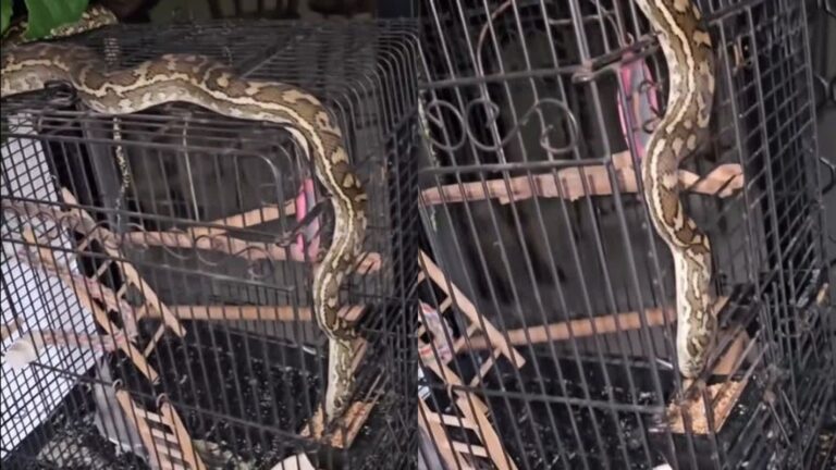 飼い鳥を狙って民家に忍び込んだニシキヘビに騒然...警察駆け付け、ヘビは現行犯逮捕