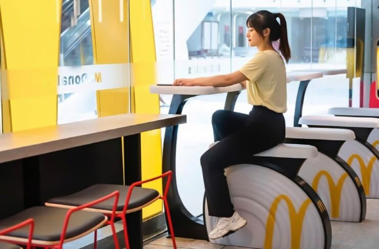 中国のマクドナルドが運動できる自家発電バイク型座席を導入し、健康と環境への配慮を示した。