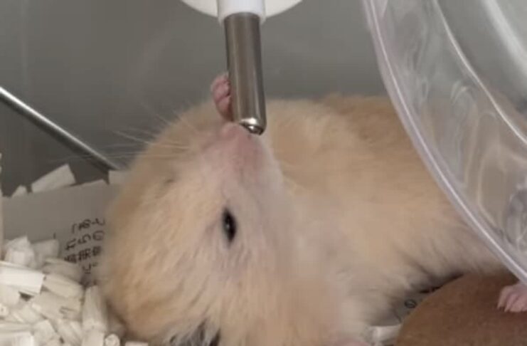 ハムスターが横になったまま水を飲む姿が話題に。怠惰さに笑いが誘われる動画がSNSで注目を集めた。