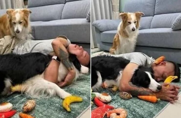 酔っ払ったパパに対する2匹のボーダーコリーの対照的な反応が話題に。愛らしい光景がSNSで注目を集める。