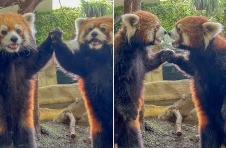 シンクロ率100%!レッサーパンダ兄弟の「息ピッタリ」な動きに悶絶する人続出!