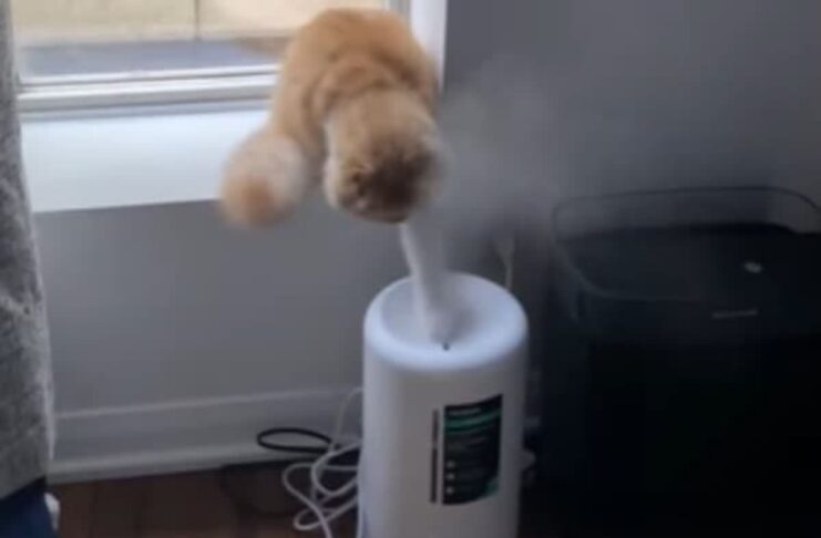 初めて加湿器を見た猫の好奇心あふれる反応がSNSで話題に。蒸気に夢中な姿が愛らしい。