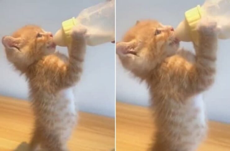 空腹の子猫が立ち上がり、夢中でミルクを飲む姿がSNSで話題に。愛らしい様子に多くの反響。