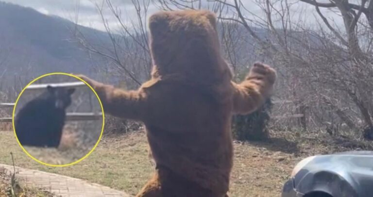 アメリカの男性が黒クマを追い払うために着ぐるみを着て近づく斬新な方法が話題に。