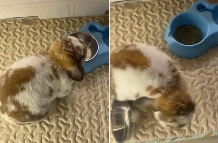 イタズラ好き飼い主vs負けず嫌いウサギの餌皿攻防!何度も投げ返す執念の戦いに「可愛すぎて反則」の声殺到