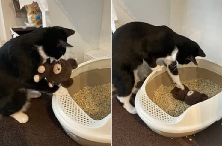 猫がぬいぐるみにトイレの使い方を教える姿が話題に。愛らしい行動にネットユーザーも大喜び。