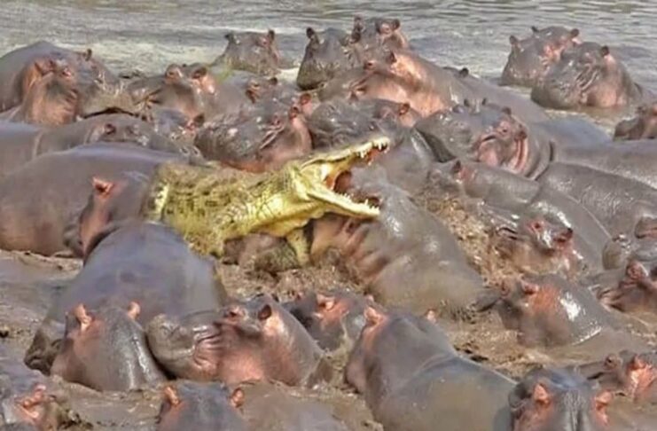 【30 vs 1】子カバを狙った“勇敢すぎるワニ” 待っていたのは地獄のリンチだった…
