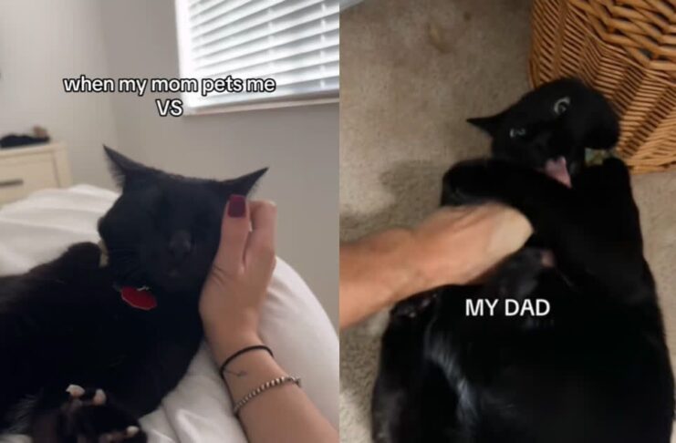 猫がママとパパに対して異なる態度を見せる動画が話題に。セーラムの反応が笑いを誘う。