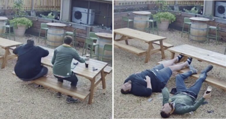 【ビール死守】ベンチごと倒れても一滴もこぼさず…豪パブの男に世界が爆笑と喝采