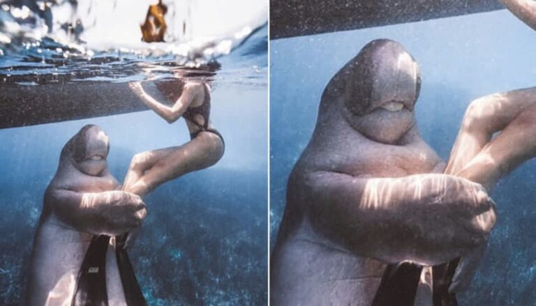 ジュゴンが女性を守るために水中で驚くべき行動を示し、多くの人々に感動を与えた。