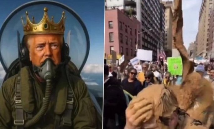 トランプ大統領はソーシャルメディアにデモ隊を標的にしたAI生成映像も投稿した。王冠をかぶった自身が「キング・トランプ(King Trump)」の文字を刻んだ戦闘機に乗って飛び、デモ参加者の頭上に排泄物を投下する描写が含まれている。