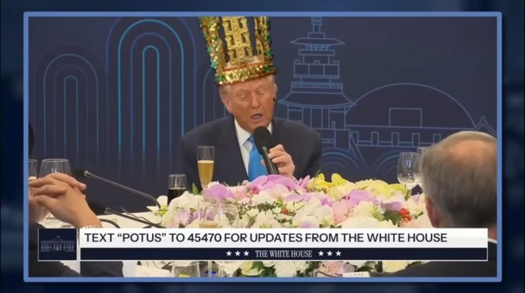 「ザ・レイト・ショー・ウィズ・スティーヴン・コルベア」の司会者コルベア氏は「韓国人がトランプ大統領にゴマをすったと言いたいわけじゃない」と前置きしつつ、「今のトランプ大統領に唯一足りなかった『でっかい金ピカの王冠』をくれたんだ」と述べた。また、トランプ大統領がヒルトン慶州でハンバーガーを注文し、ケチャップを大量に要求したことに触れ、「韓国人は文字通り彼をバーガーキングにしてしまった」と言い、会場の爆笑を誘った。