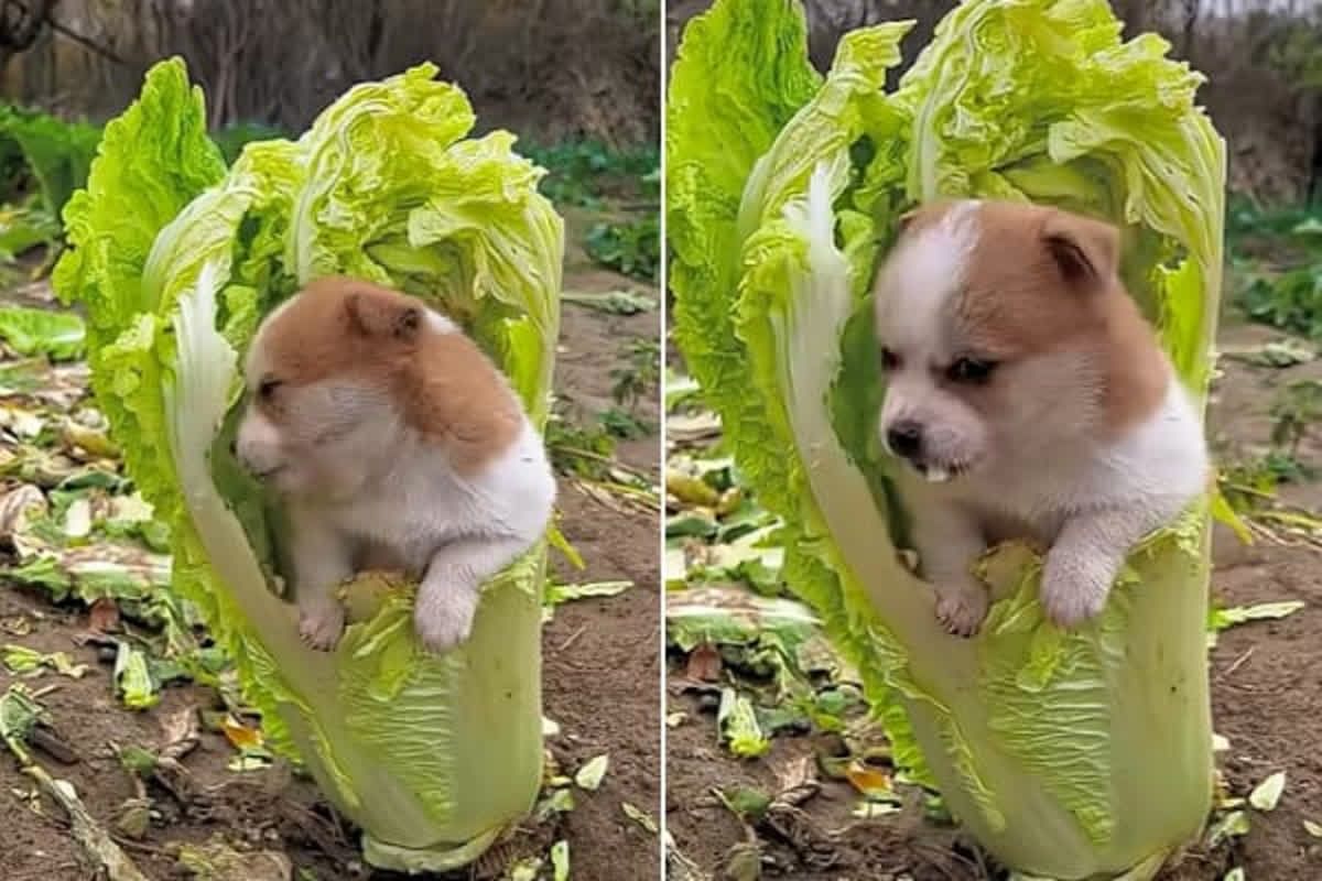 • 無邪気すぎる「白菜泥棒」!白菜に潜む子犬の姿に世界中がほっこり