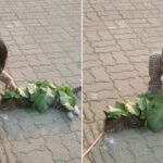 寒くないように…眠る猫に“葉っぱの毛布”をかけた少女、その手に宿る純粋な優しさ