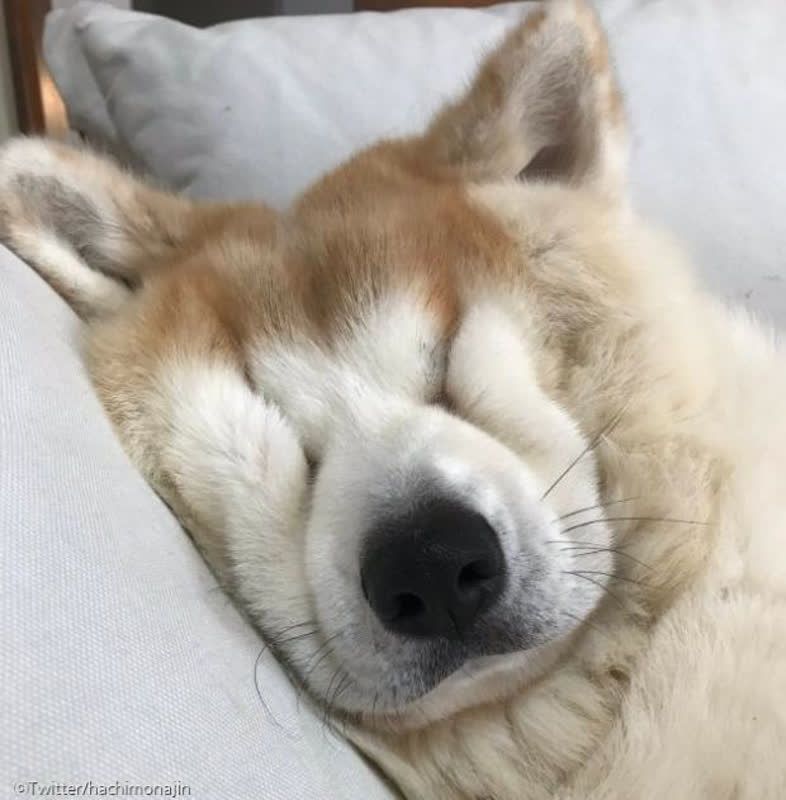 • 「寝るとパンになる犬」目と鼻はどこ?秋田犬・ジンの“つぶれ顔”が可愛すぎて笑撃!
