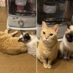 「誰がヒーター消したニャー!」一瞬で“温もり”を奪われた、猫兄弟の“睨み顔”が可愛すぎる