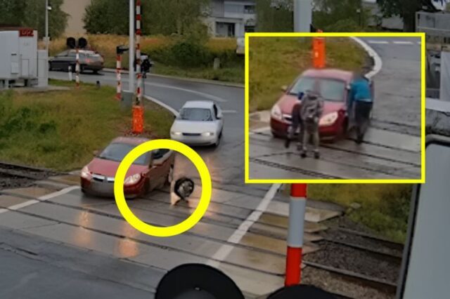 • 「迫りくる列車の恐怖!」タイヤ外れ踏切で立ち往生…“素手で車押し出す”スーパーマン警官!